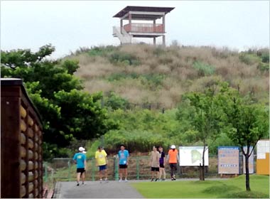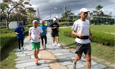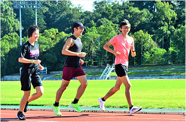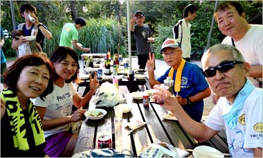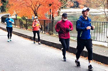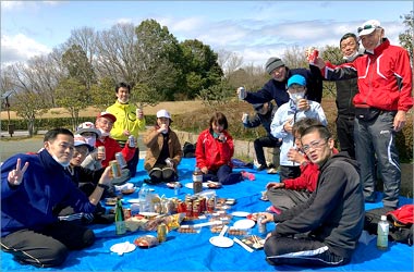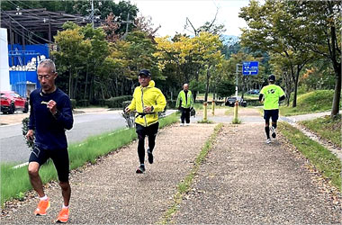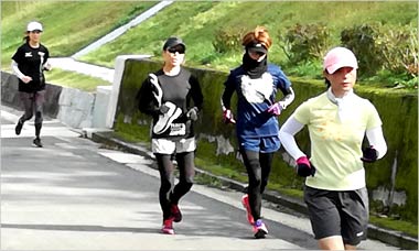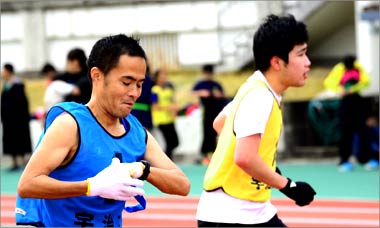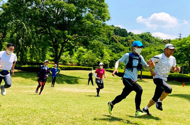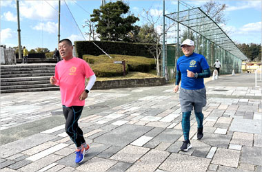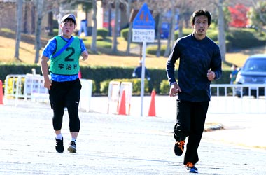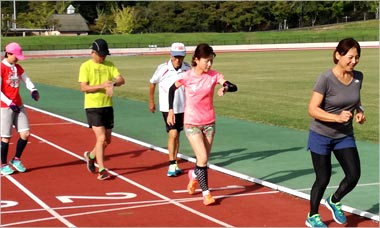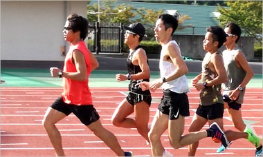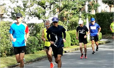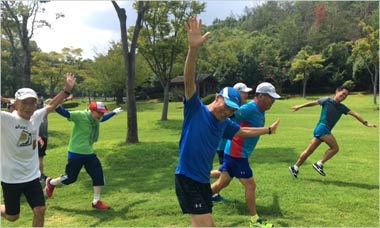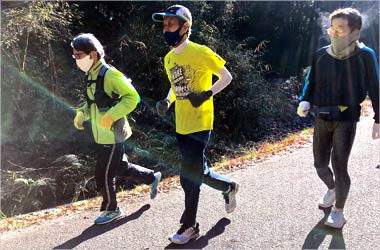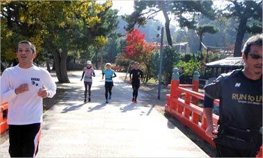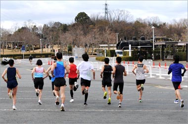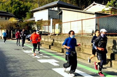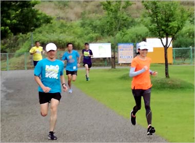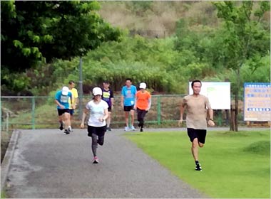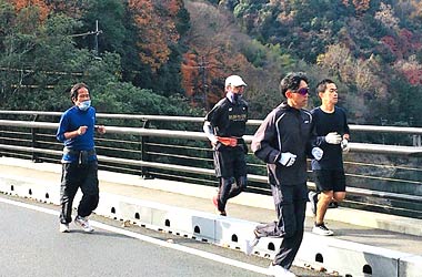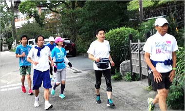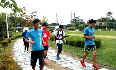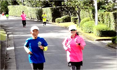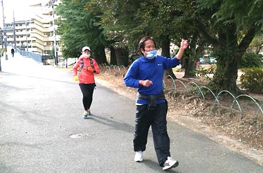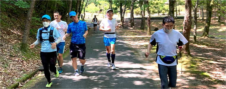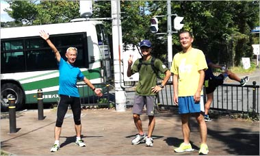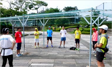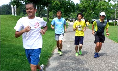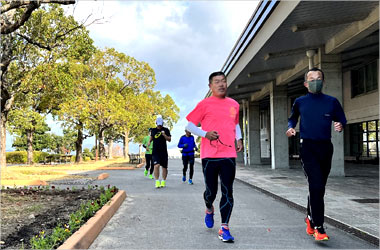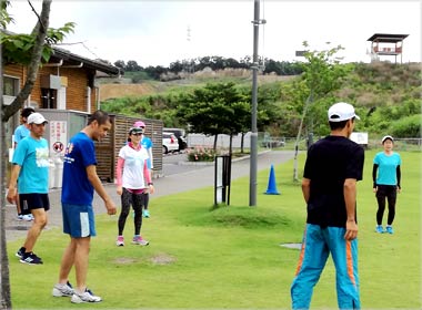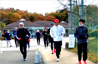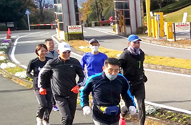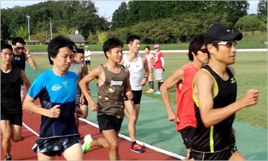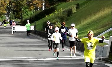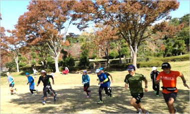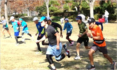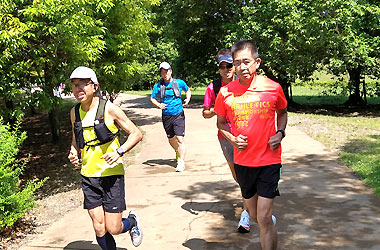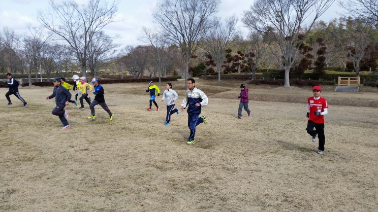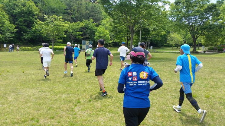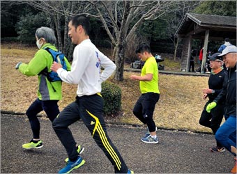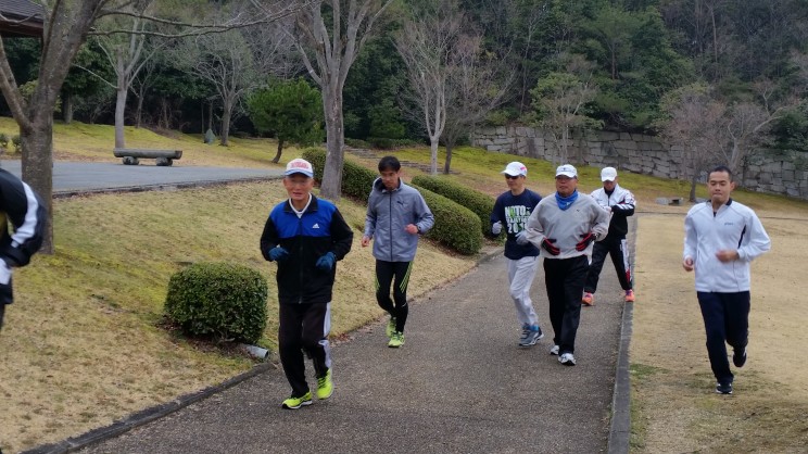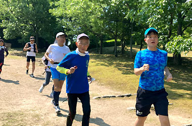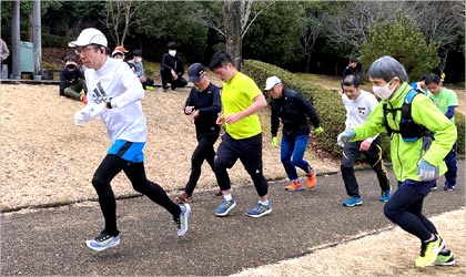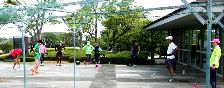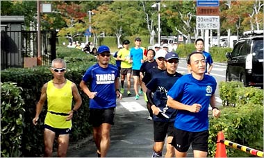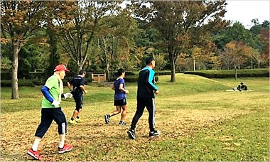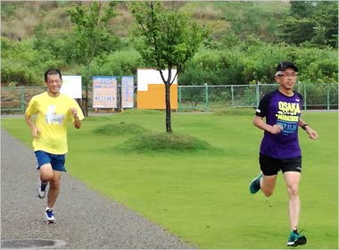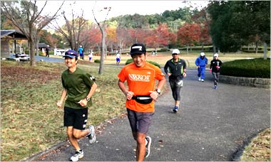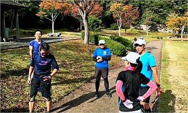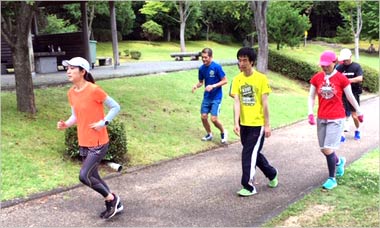 8名は公園内外を先頭交代制で40分ジョギング、