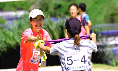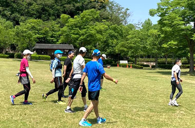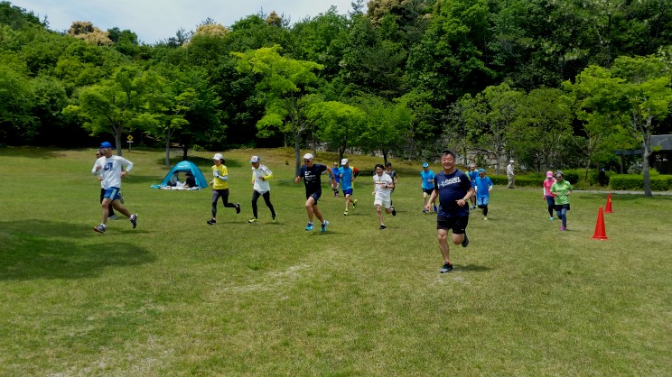 2日目は朝食を済ませた後、生駒山麓公園の園内コースで簡単なリレーマラソンをおこないました。