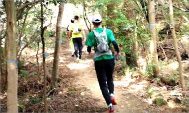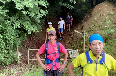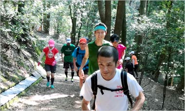 大吉山登山口から展望台まで約800mの駆け上がり往復走に挑戦。