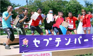 走った後には、こちらも恒例「男女ナンバー1表彰&飛び賞受賞」。