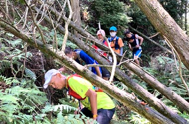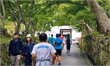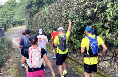 先頭に誘導されて不整地入ったり、階段上らされたり、また急にペース上がったり。
