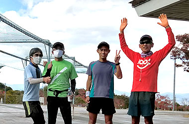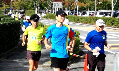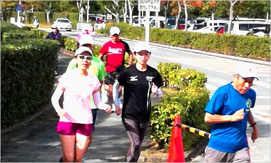 本日の練習会は久御山マラソン、大阪ハーフマラソン開催のためか、4名の参加者でした。 大町リーダによるラジオ体操を行い、各自のストレッチを行いました。 人数が少ないため、同じコースを全員で走ることにしました。 コースはクラブハウスより中央通り→宇治ゲート方面→球技場1,2の間→陸上競技場前→体育館前→クラブハウスの周回1.2Kmを1時間、約10Kmを走りました。 道中は今後の大会予定、練習方法などざっくばらんな話しで盛り上がりながら走ることができました。 練習終了後は入念なストレッチを行い、締めくくりました。 |