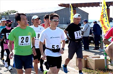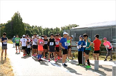 先頭に決まった方に5分間自由なペース、好きなコースを走ってもらいます。