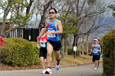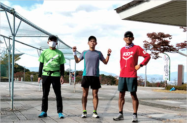 本日の練習会は16名のメンバーが揃いました。 平城京新春マラソン大会、武庫川新春ロードレース開催のためか?少なめの参加者でした。 多賀野会長のもと、ストレッチ、挨拶後、12/2に引き続き桂氏よりのスペシャルゲストとしてアジアパラリンピックで5000m銅メダルに輝いたブラインドランナー谷口真大選手が招かれました。 練習内容は2組に別れ、桂氏、谷口選手組の周回1.9Kmコースととふれあいの森周回1.1Kmコースに別れました。 桂氏、谷口選手組コースは8名参加されクラブハウスより中央広場→宇治ゲート→第2競技場→体育館裏の周回を走りました。 1周目はコース確認のため全員でジョグを行い、2周目以降は各自のペースで1時間ほど走りました。 桂氏、谷口選手のペースはとても早く、我々より倍以上のペースで走っておられていました。 ふれあいの森コースでは8名で約1時間、各自のペースで走り、終了後は流し3本、ストレッチで終了しました。 天候は曇のち晴れで曇っている時は寒く感じるが太陽が出てくると暑く感じる冬独特の季節を感じました。