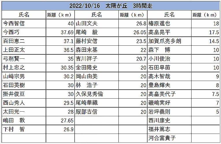 | 2024年10月20日「太陽が丘JC3時間走」報告 |