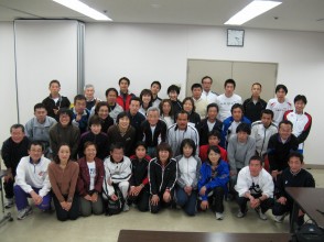 練習終了後13:30より体育館2階会議室で平成20年度定期総会を42名の参加者で行いました。会計報告、活動計画案、役員・人事案の発表後、山下(浩)氏のサブスリー表彰、金崎氏の国際マラソン出場の表彰式、会長指名の方の挨拶で終了しました。 |