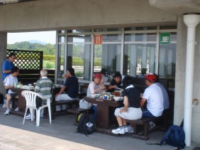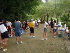午後からはJC恒例行事でもあるBBQ大会がありました。さすがに暑さのため食べよりも飲みが進み早くも秋への大会で盛り上がり、栗マラソン(マキノ)、土山、福知山、東京と皆さんの意気込みが感じられました。合宿に引き続き大好評で30名の参加者でした。 |