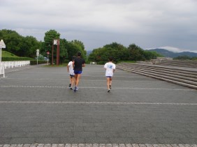 太陽が丘では園内、園外、競走部に分かれての練習会で園内はすみません未定です。園外は芝田氏による報告で喜撰山ダムまでの往復コースで6名の参加者でした。木下氏、高木氏(女性)、杉本(岳)氏、田中(俊)氏、鳥塚氏、芝田氏による長距離RUNすることが出来ました。競走部は約10名で市民駅伝2.5Kmコースを各自のペースで6〜10周し、100m流し×5本で終了しました。皆さん暑い中、頑張られました。まだまだ残暑はなこりそうですが秋の大会に向けて走りましょう。記事の情報をいただきました武林氏、芝田氏ありがとうございました。 |