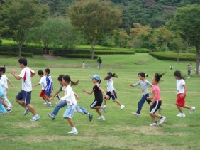 | 本日の練習会は太陽が丘JCと太陽が丘スポーツクラブ キッズの部との合同練習会がありました。本日も園内、園外、競走部に分かれての練習です。園外組は今回も情報がなく不明です。競走部はふれあいの森1Km周回コースを各自のペースで10〜15周走りました。園内組は太陽が丘スポーツクラブ キッズの部との合同練習会で松本コーチを筆頭にウォーキングから始まりふれあいの森芝生コース、クロカンコースを走りました。キッズは小学1〜6年までで約50名の参加者でみんな楽しく真剣に走ることが出来ました。JC仲間も少し若さパワーをもらったようで短距離では真剣に走りながらもほとんど差がない??方もちらほら…。たまにはこのような企画もいいですね。 |