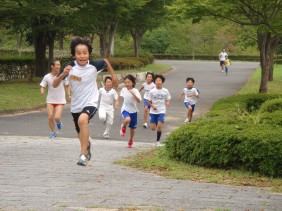 園内組は6,7名でふれあいの森コース(1.1Km)を約8周走り終了です。