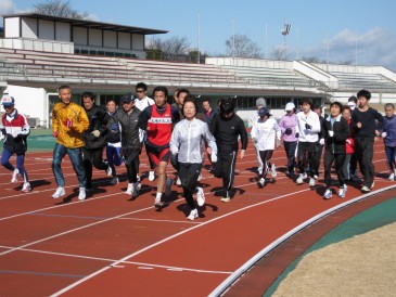 本日は天候も穏やかでとてもいい練習日和でした。JC練習会は約40名の参加者で5つのグループに分かれて行いました。青谷梅見組は8名で季節柄満開とは言えませんがポツリポツリと残ったお花見が出来ました。園内組はふれあいの森1Kmコースを8〜10周を1時間程走り、体操ををして締めくくりました。インターバル組は4名で立命館側道で400×10本、ふれあいの森1Km×4本とこの時期とてもハードな練習内容でした。噂では早くも鴨川駅伝の秘密練習とか・・・。近藤氏、真下夫妻氏の3名は園外練習でもみじ谷→天ケ瀬ダム→白川トンネル→大吉山→天ケ瀬ダムとロングコースをジョグで走り切りました。競走部は11名でもみじ谷→天ケ瀬ダム→志津川→喜撰山往復コースを走ってきました 各コースとも自分に合った練習方法でグループ毎にまとまりとてもよかったと思います。この時期はレースの方も序々に終わりオフシーズンになりそれぞれの次シーズンに向けて再出発です。皆さんも目標に向って頑張りましょう。