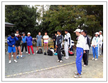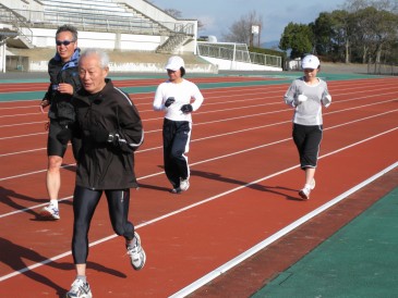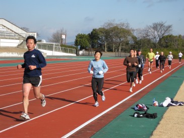 | 本日の練習会は八幡市民マラソン、宇治田原マラソン等で参加者は少なかったのですが約25名集まりました。練習は3部に分かれて園内組、園外組、駅伝組それぞれで行いました。園内組は7名でふれあいの森コース1Kmを1時間半ほどそれぞれのペースで周回しました。園外組は約5名で100円橋までの往復コースでした。駅伝組は約10名で1週間後の宇治市民駅伝を想定して駅伝コースを1時間ほど周回後、ふれあいの森コースへ移動して100mのダッシュ練習を行いました。福知山マラソン後とあって皆さんほのぼのとして練習ができたと思われました。 |