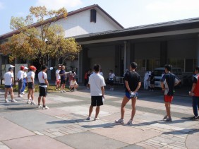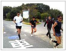 | 本日の練習会は鴨川駅伝が中止だったため、太陽が丘で練習会でした。今日の練習会は園内組と競走部に分かれて行いました。園内組は12名の参加者でふれあいの森、外周コース(1.1Km)を約70分それぞれのペースでジョグorウォーキングをしました。競走部は二宮金次郎コースを4Kmジョグ後、10Kmのペースランニングを行いました。オプションメニューとして1チーム4人制チームで4チームでミニ駅伝を行いました。10Kmを走った後なので皆さん辛そうでしたが楽しく練習することができました。 |