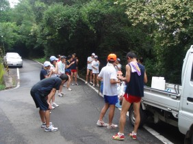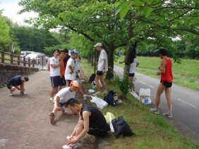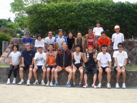 本日の練習会は太陽が丘と喜撰山組に分かれて行いました。太陽が丘では16名が練習に来られてました。園内組の10名は冒険の森で練習?澤井氏が蜂に刺されたと云う話でした。園外組は6名で大吉山をもみじ谷から行く予定が落石で通行止めで白川バイパスから宇治川を経て木下氏とK氏の2名は大吉山越え、近藤氏と豊田氏は来た道を帰り芝田氏と池田氏は白川から太陽が丘に帰って来ました。 競走部は約20名の参加者で喜撰山頂上にて練習を行いました。3.5Kmのジョグ、ストレッチ後、3000mタイムトライアル→3000m流しを3セット行い、特別練習としてラスト1本の3000mタイムトライアルを行いました。木陰が多く涼しいのですがこれだけ走ると大変体力が消耗してしまいます。コーチよりのエイドステーションにより皆さん快適に走ることができました。 本日の競走部記録を掲載いたします。
