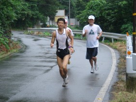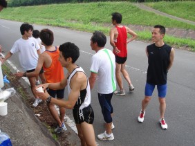 本日の練習会は太陽が丘と不動川公園に分かれての練習会となりました。太陽が丘では園内組14名参加でふれあいの森コースを10周前後走り、日焼けを意識した完全武装?の参加者もおられました。 ランナー組は3Kmのアップ後、400m×7本のショートインターバルを行い、ダウン1Kmで終了しました。 マラニック部は8〜9名の参加者でJR??駅までの往復コースを走りました。最後の4Kmは山下(ま)氏が引張りペースアップされました。 競走部は21名の参加者で9:00に不動川公園に集合し周回400m×3本のジョグ後、10000m、5000m、400m×5本のタイムトライアル、階段ジョグ、ダウン400×3本とかなりきつめの練習を3時間半行いました。 本日は走りやすい天候ですが皆さん日焼けされたのではないでしょうか?給水、日焼け止めクリームを塗って走りましょう。 本日の競走部結果を記載します。 10Km 今西36:48 平林(友)37:05 林37:37 5Km 今西18:07 平林(友)18:09 林18:18 400m 平林(克)1:03 小林1:06 林1:09 上位と下位の力差が縮まりコーチが求める練習ができて、引張るものもしっかりできてきた。戦う集団になりつつある。 |