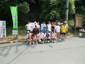 本日は太陽が丘で京都大作戦の会場となっているため、練習場所を変更し合同練習会を不動川公園でクラブ内駅伝を行いました。約40名の参加者、9:00に集合でストレッチ、試走を行い7チーム4人制で10区まで42.195Kmを走りました。1区は競走部精鋭部隊で固め6Km、2〜9区は4Km、10区は4.195Kmです。暑い中、皆さん2〜3回走り頑張っておられていました。7チーム中6チームはサブスリータイムで残り1チームも惜しくも1分差で大健闘です。終了後、引き締めるためダウン、ストレッチ、結果発表で終了しました。