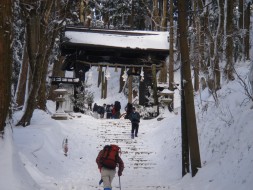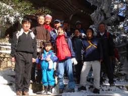本日は毎年恒例となる愛宕さんハイキングでした。新年にも関わらず16名のメンバーが揃いお互いに新年のあいさつをしてスタートです。大晦日の雪が心配ですが思った通り登山口までの道のり歩道脇には雪が残っており例年と違う雰囲気が漂う中でのハイキングです。 登り口手前の鳥居で恒例の記念撮影、今年はどれだけ雪が積もっているのだろうか?登山客は雪のためか少なめ、15/40目位からシャーベット状の土に変わり5合目では辺りは銀世界に変わる。7合目以降は雪でアイゼンなしで登るのは困難なくらいでした。やはり例年とは違いますね。そんな中、杉本氏の子供さんは元気いっぱいで2時間で山頂まで登られました。大人顔負けですね。 昼食後、月ノ輪寺経由で下山をするが雪が残りよく滑ります。下山後、子供さんより「バイバイ、また今度ね!」とあまりにも元気さで皆さん拍子抜けで終わりました。 |