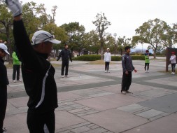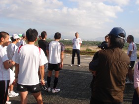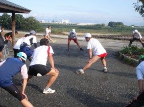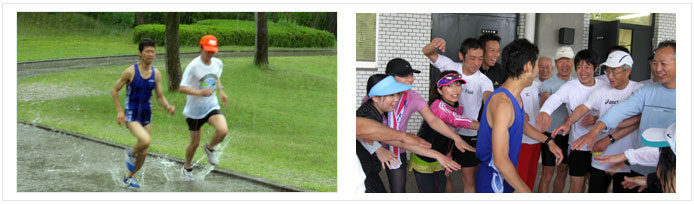 最後に大澤さんのストレッチの後、「鴨川駅伝」に向け全員で林君の掛声のもと、気合を入れなど、雨の中での練習会は大いに盛り上がりました。