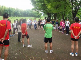 練習メニューは「ふれあいの森」が"走る男F 東日本大震災チャリティジョギング大会"のランニングコースとして使用される為、練習場所を「冒険の森」にて競走部、ランニング部、ジョギング部、合同で練習を行いました。