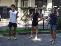 本日の練習会はジョギングの集いで全体練習を行い参加者は天候が悪いせいか約25名のメンバーでした。 林(秀)氏の企画でふれあいの森400mコースを60分耐久リレーという名目で3〜4名のチームを組み1周毎にリレーをするという新しい練習方法で大変賑わいました。 チームはガンチコ組3名一組で2チーム、普通組4名一組で3チームに分かれそれぞれのペースで走るがインターバルが少ないせいか皆さんかなり苦しんで走っておられていました。 30分経過後、不幸中の幸いか雨が降り出してきてリレーは中断しましたが競走部以外の方は内心ホッとしていたようでした。 クラブを盛り上げるにはこういった新企画も面白いものですね。もう少し涼しくなると60分耐久レースも楽になるでしょう。