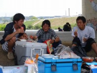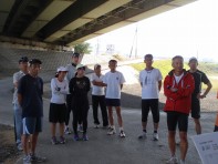 本日の練習会はバーベキュー大会があるということで9時30分に京阪宇治駅に集合してアルプラザ宇治東店裏の河川敷(京滋バイパス高架下)のバーベキュー大会地に現地集合しました。 約20名のメンバーでストレッチをして幹事以外のメンバーで桃山御陵を目指して走りました。道中はほとんど宇治川河川敷を走りました。 桃山御陵に到着後、明治天皇陵の長階段をダッシュで上るが皆さんバテバテでした。迂回コース後、再び階段ダッシュで締めくくりバーベキュー会場に戻り練習時間は1時間20分くらいで終了しました。 しばらくすると幹事の買い出し組が戻りバーベキュー大会の開始です。バーベキューは約35名で皆さん楽しいひと時を過ごされました。 幹事の方、場所取りから買い出し、片づけまでお疲れ様でした。雨も降らずとてもいい1日でした。 |