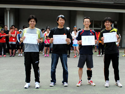 本日はゴールデンウィーク半ばとあって参加メンバーは少なく約20名でした。 天候もよく暑かったので冒険の森コース往復3Kmを各々のペースに合して走りました。 アップダウンの多いコースなので皆さん大粒の汗をかきながら走り、約1時間30分3〜5往復しました。 終了後、流しとして芝生直線登り75mを3往復してストレッチで締めくくりました。 5月5日は太陽が丘第2陸上競技場でタイムトライアルを行いますので皆さんのご参加をお待ちしています。 幹事、準備を手伝っていただける方は8時30分に集合お願いします。 |