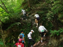 今回のクラブ合宿は例年にない多さで太陽が丘JC+マソ練メンバーで28名のメンバーが揃いました。 天候もよく、とてもいい練習会でした。 1日目は12:30にガリバー青少年旅行村に集合し13:00スタートで武奈ヶ岳方面へトレイユラン開始です。 ほとんどの方が登山経験がない方ばかりで長袖、長ズボンは着るがマラソンシューズ、素手、ペットボトルで超軽装で山に入る。 3グループに分かれいざ出発するが10分も走ると早くも道間違え、沢崩れで正規ルートがわかりにくく沢崩れを強行突破するグループ、川沿いを進むグループと山の怖さを各々味わいました。 シューズはもちろん、服もドロドロ、鎖・ロープ登りありとまさにアドベンチャーでした。 ほとんどの方が1.5〜2時間で身の危険を感じ引き返すことになりました。 全員無事に17時までに帰ることができ良かったです。 夕方よりはバーベキューの準備、開始で時間どうり行いことができました。 9.5Kgの肉類、野菜、焼きそば15名分、ビール類は残すことなく丁度いい量で皆さん満足されていました。 花火大会に宴会と普段見ない皆さんの姿を見ることができとても楽しいひと時でした。 翌日のホットドッグも好評でした。 早めのチェックアウトでほぼ全員、近江白浜水泳場までの道のり約13Kmを走りました。 暑い中、皆さん頑張って走っておられていました。 全員到着後、ビーチフラッグ大会で盛り上がり豪華景品?ありでとても楽しく終わることができました。 |