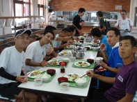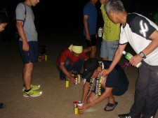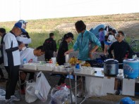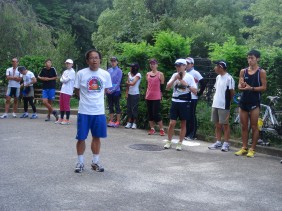 各グループとも真剣そのものでまさに強化合宿という感じで無言で黙々と皆さん走られていました。 終了後は夕食、お楽しみ会ととても楽しいひと時でした。 とくにお楽しみ会は幹事企画のチーム対抗によるクイズ大会でとても盛り上がりました。 翌日は8:30より練習開始で4Kmクロスカントリーコース予定でしたが雨天のためコース変更となり京丹後ロードレースの5Kmを走ることになったのですが途中でコースがわからなくなり2.5Km周回コース3時間走になりました。 小雨が降る中、皆さん頑張られておられていました。 11:30に練習終了となり幹事のあいさつで合宿終了となりました。 幹事、マネージャー、西練様、選手の皆さんお疲れ様でした。 |
